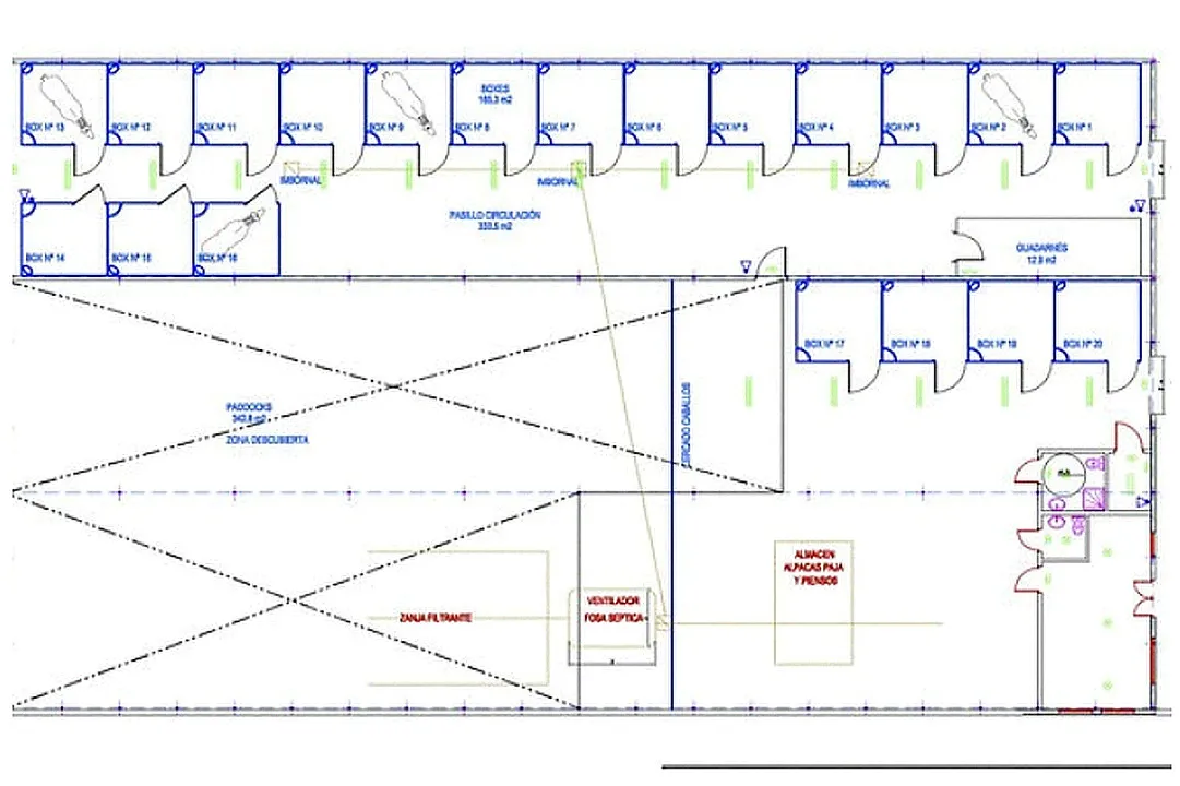 21 boxes para caballos (3 x 3 m) con bebederos automáticos