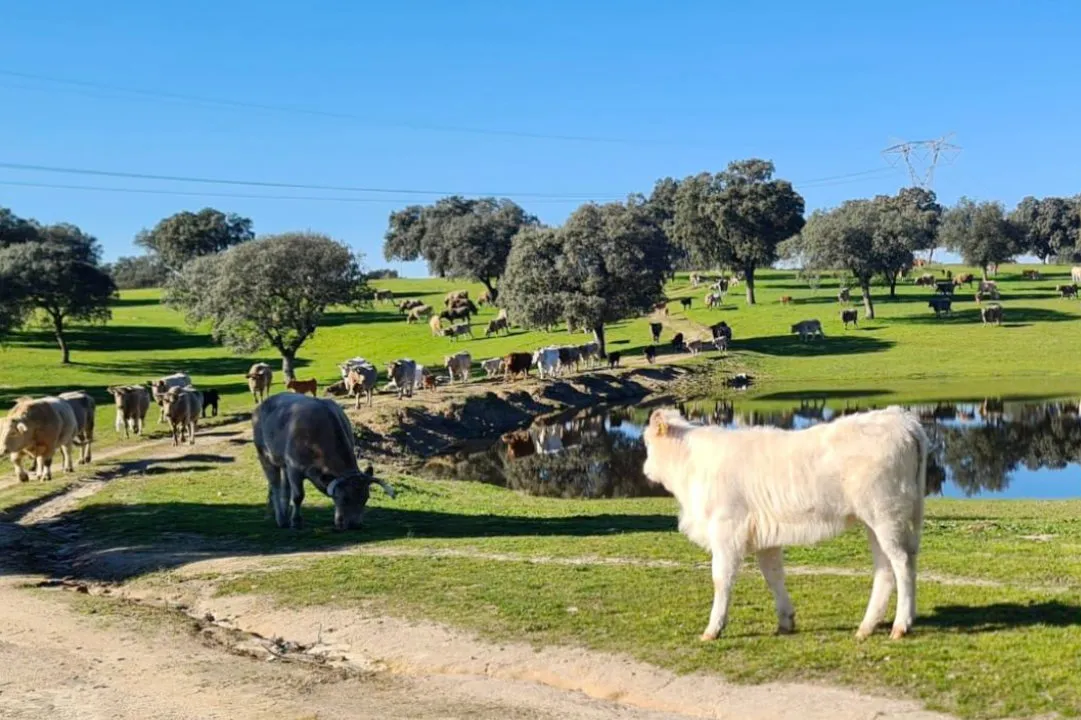 Gran finca ganadera con una superficie de dehesa de 701Ha, ubicada en el noreste de la provincia de Cáceres. Consta de 3 casas (una vivienda residencial de 310m2 y dos viviendas para empleados recién reformadas), una instalación de plaza de toros con corrales, naves ganaderas, agua corriente dependiente de la red, electricidad autónoma por placas solares y charcas para el suministro de agua de los animales.