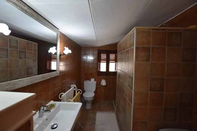 Planta baja: amplia sala de entrada, cocina-comedor con chimenea, baño completo, acogedora sala de estar, almacén interior y habitación doble.