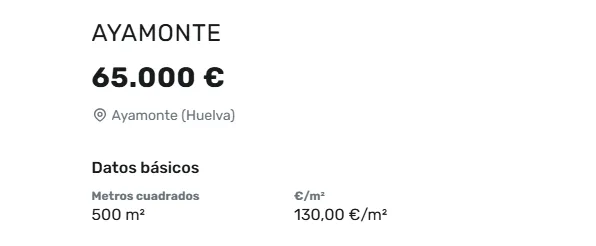 Huelva 0,05 hectáreas € 1.300.000€/ha