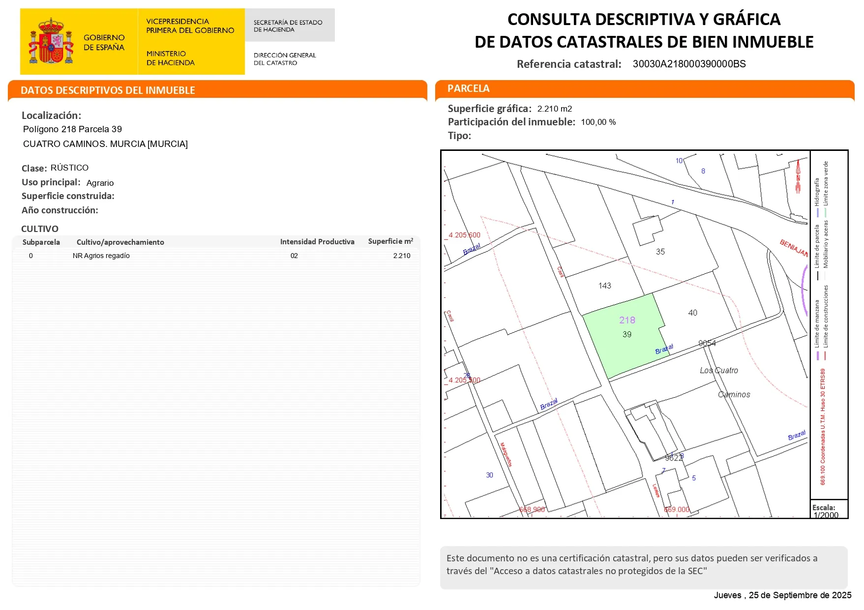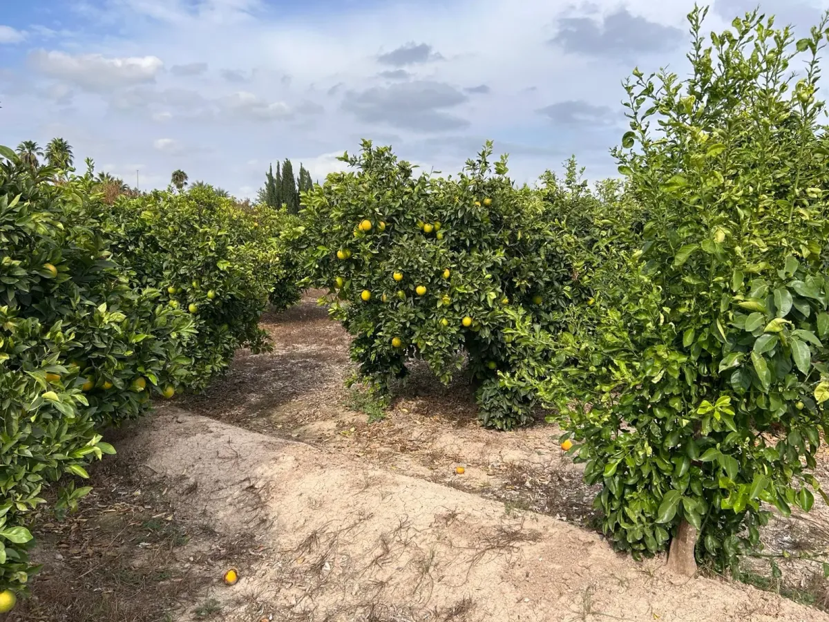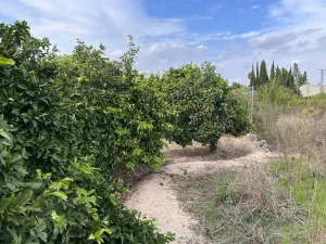 Terreno rústico de naranjos en plena producción de naranjos. Son dos tahúllas de terreno a menos de un 1 kilómetro de Beniajan, acceso directo desde el carril y vallado. Está a 5 minutos de Murcia. Cuenta con puerta de riego y el terreno está dividido en tres tablas para facilitar el riego.