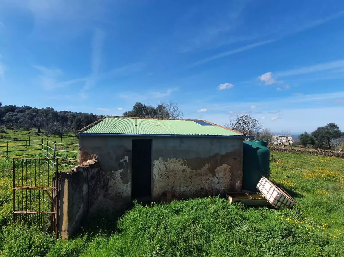 Finca de 3 ha de dehesa y recreo muy cerca del pueblo, en Salvaleón, Badajoz. Finca con encinas, chaparros y alcornoques, 2 pozos con depósito de agua y 2 pequeñas casas para reformar.