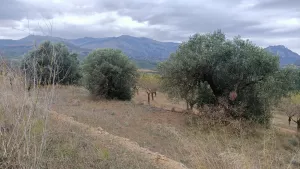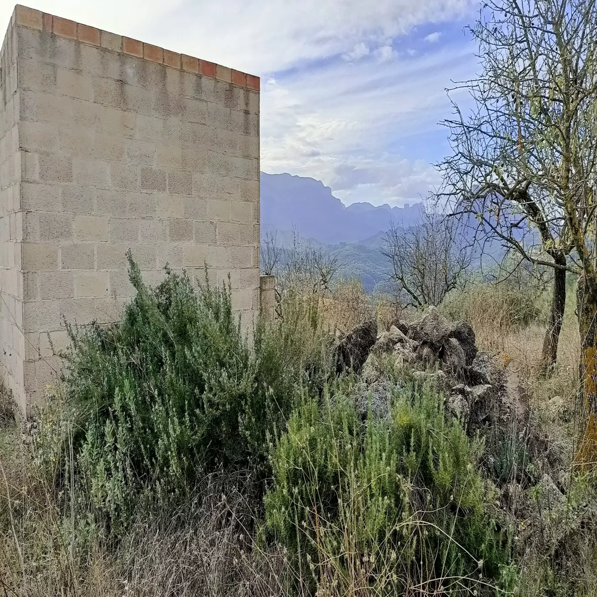 Finca entre Bot y Horta de Sant Joan, con acceso fácil a la carretera que va a ambos pueblos, tiene algunos almendros, cuatro olivos centenarios y un par de carrascas preciosas, no es un terreno plano, tiene diferentes niveles con márgenes de piedra, casita para herramientas de campo y aljibe. Tiene pequeña casa en ruinas de 1914 que se puede volver a construir, no dan permiso para edificar nuevo. Vistas espectaculares a la montaña de Santa Bárbara.Se puede ir hasta Bot a comprar en bici. Muy cerca de una vía verde y pozas de agua llamadas Les Olles.