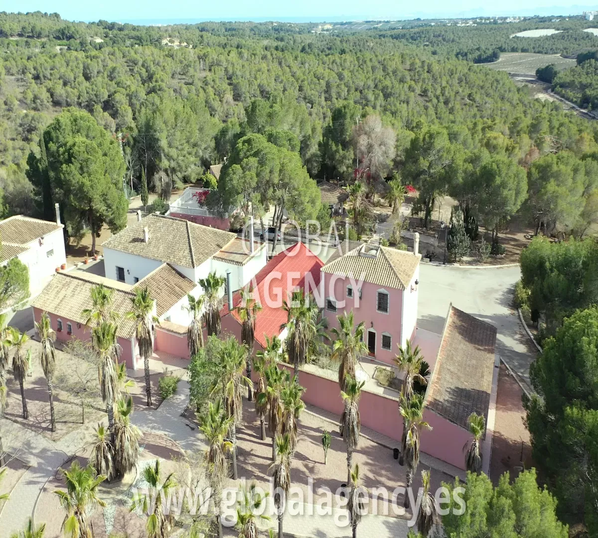 Las edificaciones incluyen una residencia principal, varios edificios
